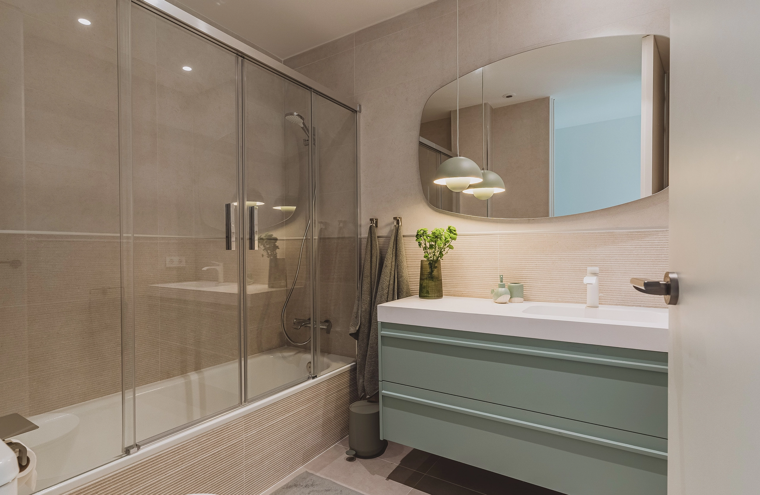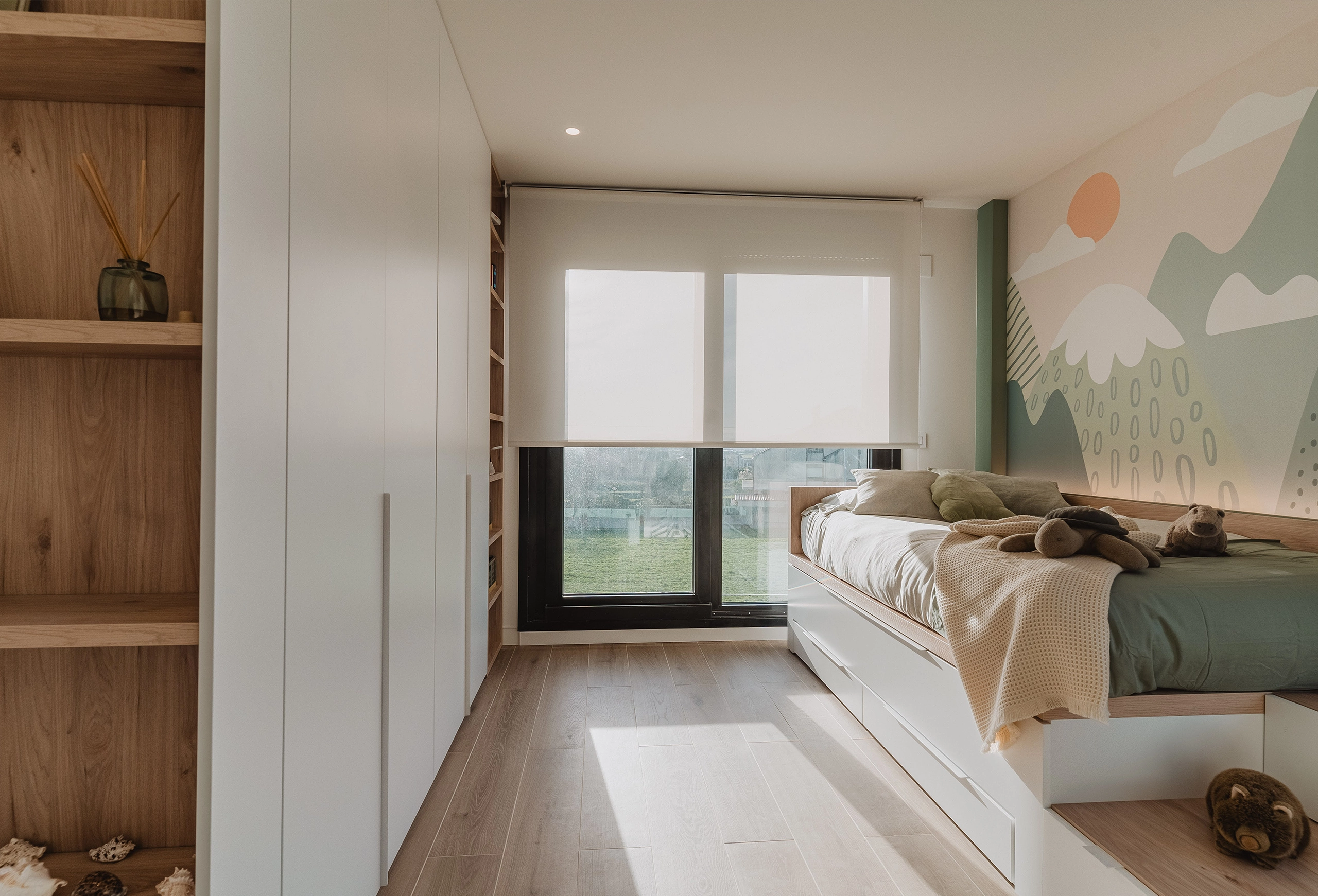 La zona de noche, por su parte, respira calma y elegancia. La habitación principal ha sido diseñada como un retiro personal para los adultos, donde las líneas limpias, los tonos profundos y las texturas despiertan sensaciones táctiles y visuales que enriquecen la experiencia.