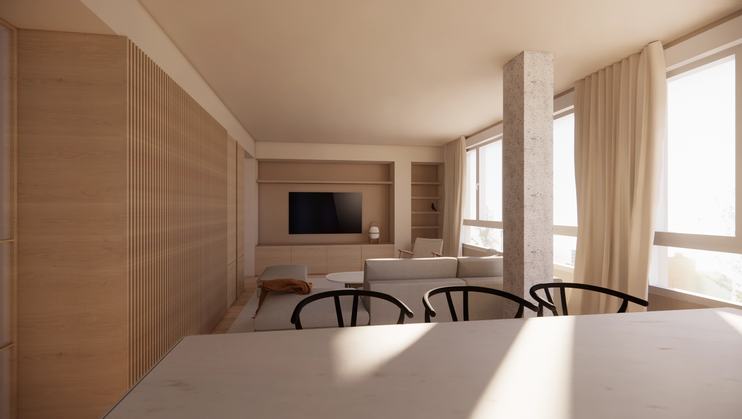 Por un lado, eliminamos algunos tabiques para permitir que la luz entrase hasta el pasillo, y volcamos las estancias principales hacia las vistas.
